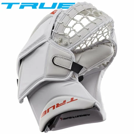 The True goalie gloves use high-density foams and jenpro to provide pro level protection and durability without sacrificing an easy to close feeling. The high-end materials combined with the extra level of care put into the lacing and construction of the glove gives goalies an extremely close connection to the internals of the glove. The gloves also feature a suregrip material throughout the internal palm of the glove for a no slip grip and comfortable feel. Along with the suregrip material the gloves feature a nylon webbing wrist strap, and Velcro backhand adjustment for a secure fit for a wide range of hands.