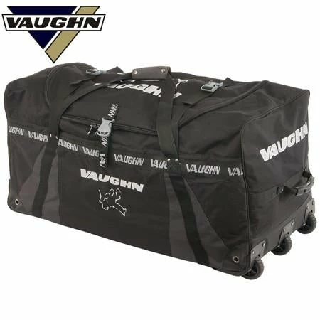 The BG VE8 goal bag is designed to hold a complete set of adult size goal equipment. The bag is constructed with a durable high strength 1680 denier nylon and reinforced with rip stop nylon in critical high stress areas. Carry straps are box stitched and reinforced for added strength. Three wheel design has large size wheels that help keep the bag from dragging on the bottom edge when heavily loaded. Internal storage pockets with zippers on each side and one end for added storage inside the bag. Wide U shaped opening for easy access and added straps across the top of the bag can be adjusted to keep the equipment from shifting and keeps the equipment centered in the bag for easier pulling or carrying of the bag.